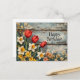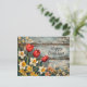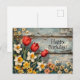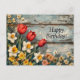 Cartão Postal Red Tulips and Daffofils on Blue Wood