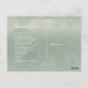 Este cartão postal moderno de casamento "Obrigado" é ligeiramente informal, com um sentimento quente e pessoal e apresenta um abstrato, design de aquarela que se assemelha a reflexões sobre a água. Este exemplo tem paleta de cores de gradiente de creme pálido a verde de sábio suave. Personalize com o novo nome casado e obrigado pessoal da noiva e do noivo, usando o modelo. Procure ID774 para ver o conjunto de correspondência completo e opções de cor adicionais.