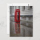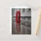 Lembre-se do seu passeio pelas ruas chuvosas de Londres com este tiro e cartão postal de uma caixa telefônica vermelha refletindo a rua molhada.