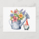 Cartão Postal Regador com Flores e Gnome de Jardim