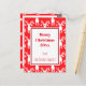 Cartaz branco e vermelho de piquete de Natal com renas e bolas de picles em fundo vermelho. . Excelente ideia de enviá-la para seu amigo ou membro da família no Natal. Custom Text