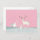 Cartão Postal Reindeer de inverno e Bunny na neve em queda