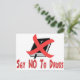 Bíblia com uma cruz e um "X" vermelho com texto em vermelho que diz "Diga NÃO às drogas". Recebe a mensagem através dessa religião que é a maior droga de controle mental jamais desenvolvida para escravizar seres humanos.