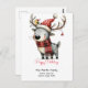 Rena fofa usando um chapéu de Papai Noel em um cartão postal. O texto pode ser alterado. Gráfico assistido por IA comprado com uso comercial. Arte: RedHeronLighthouse