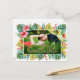 Se você está tendo um casamento temático tropical, este é o cartão postal SAVE THE DATE perfeito com sua foto de noivado. Sua foto horizontal é cercada por flores tropicais de aquarela e folhagem. "Salvar a Data" escrito manualmente em um script de pincel dourado sobre sua foto horizontal. Dourado "estão se casando!" nas costas com informações adicionais. O gradiente preto sobrepõe fotos para que o script dourado se destaque. Você pode eliminá-lo se não for necessário.