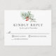 Um design RSVP de feriado simples e na moda com pinho, névoa e bagas botânicos em tons de cor d'água de vermelho e verde. Personalize a parte frontal do design com a data de resposta necessária e a parte traseira do cartão postal com seu endereço de devolução.