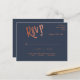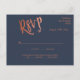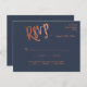 Crie um cartão de inserção RSVP personalizado e esplêndido, chic e elegante para seu evento de recepção de casamento, banquete ou festa. Esta placa de inserção do gabinete apresenta um roteiro de caligrafia espaçoso e bonito escrevendo em folhas de rosa dourado falso e com fundo de marinho. Você pode personalizá-lo facilmente com seu próprio texto e personalizá-lo de acordo com o seu gosto. Observe que "RSVP -by-" e trabalho de arte gráfico não podem ser editados. Nota complementar: O impressão de folha de ouro é um efeito de folha de rosa falsa. Não é a folha de ouro de rosa a quente.