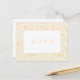 A escrita tradicional é emparelhada com um eterno, uma letra simples, na etiqueta da cerimônia da igreja. Este design apresenta um padrão de rendas brancas na parte de trás do convite, com um sutil fundo de ouro macio. Sofisticado, clássico, eterno e simples - perfeito para um casamento elegante ou de gravata negra.