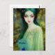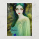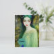 Cartão Postal Retrato da Mulher Fantasia Elegante em Verde e Azu