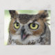 Um perfil extremo de uma Coruja Excelente Corada. Corujas de Corno excelente são o predador máximo da natureza, e este é um olhar íntimo para o rosto maravilhoso de um belo pássaro de presa.