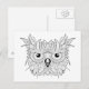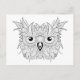 Cartão Postal Retrato de Coruja Fofa Doodle