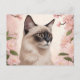 Cartão Postal Retrato de Gato Balinês com Flores em Flor