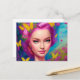 Cartão Postal Retrato de uma bela mulher com rosa brilhante