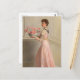 Retrato de uma Senhora de Rosa Carregando uma Tigela de Cravos Rosa de John Collier apresenta uma representação refinada e elegante de uma mulher em delicadas tonalidades de rosa. A modelo, vestida com um vestido rosa fluído, carrega uma tigela cheia de cravos rosa suaves, simbolizando graça, admiração e feminilidade. Collier, conhecido por seu uso magistral do realismo e iluminação suave, captura as texturas delicadas tanto do tecido quanto das flores com detalhes requintados. A pintura exala um senso de dignidade tranquila e beleza refinada, característica de seu estilo de retrato.
