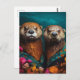 Cartão Postal Retrato Floral das Otters Cutes