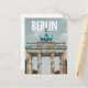 Qualquer pessoa adoraria receber este cartão postal de pôster de viagem cor-de-rosa vintage com uma ilustração retrô da silhueta da cidade de Berlim, Alemanha, incluindo o icônico Portão de Brandemburgo!