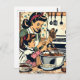 Cartão Postal Retrô Bonito Mãe e Filha Batendo Juntos
