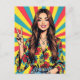 Cartão Postal Retro Boomer Hippie Lady dando Sinal de Paz