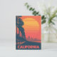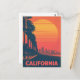 Envie um pedaço do Estado do Ouro com este cartão postal no estilo retrô. Apresenta uma ilustração vibrante de uma cena clássica da Califórnia, com uma rodovia alinhada com palmeiras a caminho de um horizonte urbano no pôr do sol. Este cartão postal é perfeito para compartilhar as vibrações ensolaradas da Califórnia com amigos e familiares, como recordação de uma viagem, ou como um impressão de arte para sua casa. O design da safra adiciona um toque legal e nostálgico que certamente será amado.