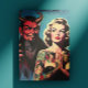 Cartão Postal Retro Devilish Tattooed Pin-up