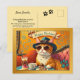 Cartão Postal Retro Diversão Gato e Bolo de Aniversário