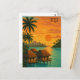 Cartão Postal Retro Fiji Tropical Ocean Bungalows Sunset View