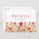 Cartão Postal Retro Pastel Pink Boho Wildflower Obrigado