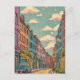 Uma ilustração vibrante e colorida de uma charmosa rua em Dublin, na Irlanda. Os prédios são pintados em várias matizes pastéis, criando uma atmosfera alegre e convidativa. O céu está cheio de nuvens fofinhas e estrelas cintilantes, acrescentando um toque de magia. A rua está alinhada com paralelos e carros vintage estacionados ao longo do lado. A cena global é pacífica e idílica, capturando a essência desta bela cidade europeia.
