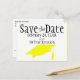Enviar este anúncio de cartão postal amarelo e preto "Save The Date" com o Código QR para a reunião da sua classe. Personalize o texto nos campos modelo para frente e verso, adicione o link apropriado para o seu Código QR ou edite usando a ferramenta design para selecionar um estilo de fonte, tamanho e cor que você preferir.
