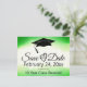 Envie este convite de reencontro de turma desenhado com aquarela verde "Salvar a Data". Personalize o texto nos campos do modelo para a frente e verso ou clique em personalizar para selecionar um estilo de letra, tamanho e cor de sua preferência.