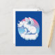 Um rinoceronte branco com asas de anjo, sentado na nuvem no céu. Rinoceronte design gráfico de Consciência de Conservação no Cartão-postal.