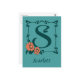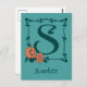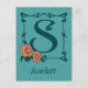 Linda letra de arte nouveau S. A letra e a borda retrógrada do rico estão em ciano profundo, as flores estão em vermilhos brilhantes.