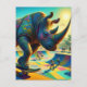Cartão Postal Rinoceronte Adorável de Skateboard