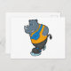 Cartão Postal Rinoceronte no patins no gelo com bolsa de cinta
