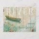 © Daphne Brissonnet / Wild Apple. Imagem de um rio com uma cadeira branca de madeira virada para o rio. Uma jangada verde pode ser vista na imagem.