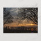 O pôr do sol sobre o rio Hudson oferece cores profundas e reflexões enquadradas por árvores negras.