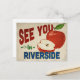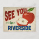 A charming Riverside California vintage travel postcard featuring a lovely red apple, along with fun retro style text that says, "See you in Riverside"