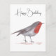 Feliz aniversário, pássaro Robin, Robin aquarela pintando cartão postal. Bird art, cartão da vida selvagem. Férias de Natal.
