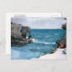 Um cartão postal com a pintura de aquarela fina de Winslow Homer intitulada Rocky Shore, Bermudas (1900). Uma enseada no Caribe com água azul brilhante e penhascos rochosos.