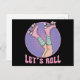 Cartão Postal Roller Girl Skater Retro 70 e 80 Raparigas Skating