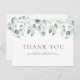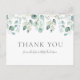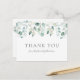 O Cartões de agradecimentos elegante apresenta uma cascata de cor d'água de eucalipto verde. Personalize com suas informações ou clique em "Clique para personalizar mais" para editar estilos de fonte, tamanho e cores. Também pode ser personalizado no verso com sua própria mensagem digitada ou excluir este espaço para escrever manualmente seu próprio obrigado.