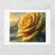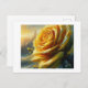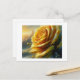 Uma imagem vívida e giratória de uma rosa amarela atrai a atenção com pinceladas dinâmicas e cores radiantes. A luz ilumina as pétalas, melhorando suas matizes vibrantes contra um fundo dramático.