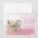 Lindo Cartão Postal Rosa com Bordado Floral de Passarinho