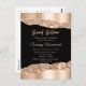 Este convite de aniversário de dezesseis anos elegante e glamoroso apresenta lágrimas de glamour brilhante rosa dourado falso em um fundo preto. O texto combina fontes manuscritas e modernas sem serifa para um visual sofisticado e elegante.