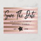Anuncie a próxima doce festa de aniversário 16 com esta elegante Festa de aniversário "Doce 16 Salve a Data. Duas Tendências de Cores Muito Populares e a Glitter misturadas criaram cartões postais modernos, luxuosos e na moda. Esta moderna moda salva a data do cartão-postal apresenta uma mistura de rosa dourado faux glitter e rosa faux foil stripes.