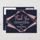 Elegante, chic e moderno com uma vibração retrorreflectora, esboços impressos em forma de diamante geométrico rosa de ouro em azul marinho, mauve e recorte de diamante rosa pincelado, Obrigado Cartões postais. Este design clássico e sofisticado é perfeito para qualquer evento de na moda e tendências, incluindo casamentos e ocasiões cotidianas. Toda impressão de fotos.