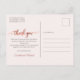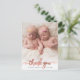Rapariga Da Caligrafia Moderna Gira Fotos De Bebês Recém-Nascidos Obrigado Cartão-Postal. Apresenta um belo e elegante texto de "obrigado" num texto cursivo de letra de letras maiúsculas e minúsculas de letras maiúsculas (ou folha cor-de-rosa escamoteada). No lado inverso, mensagem pessoal pré-feita em fundo rosa-claro. Excelente para a menina. Fácil de personalizar com suas fotos e detalhes de bebês.