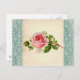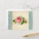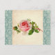 Uma bela ilustração vitoriana rosa de um cartão de chamada é definida em um fundo envelhecido com uma borda aqua ou turquesa damask. Um belo chique ou vintage para a design feminina, mas elegante, menina feminina!