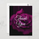 Cartão postal de agradecimento de festa com uma imagem aproximada de uma rosa magenta roxa de aparência gótica. Um estilo escuro e misterioso.