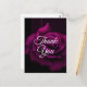 Cartão postal de agradecimento de festa com imagem aproximada de uma rosa magenta roxa de aparência gótica. Um estilo escuro e misterioso.